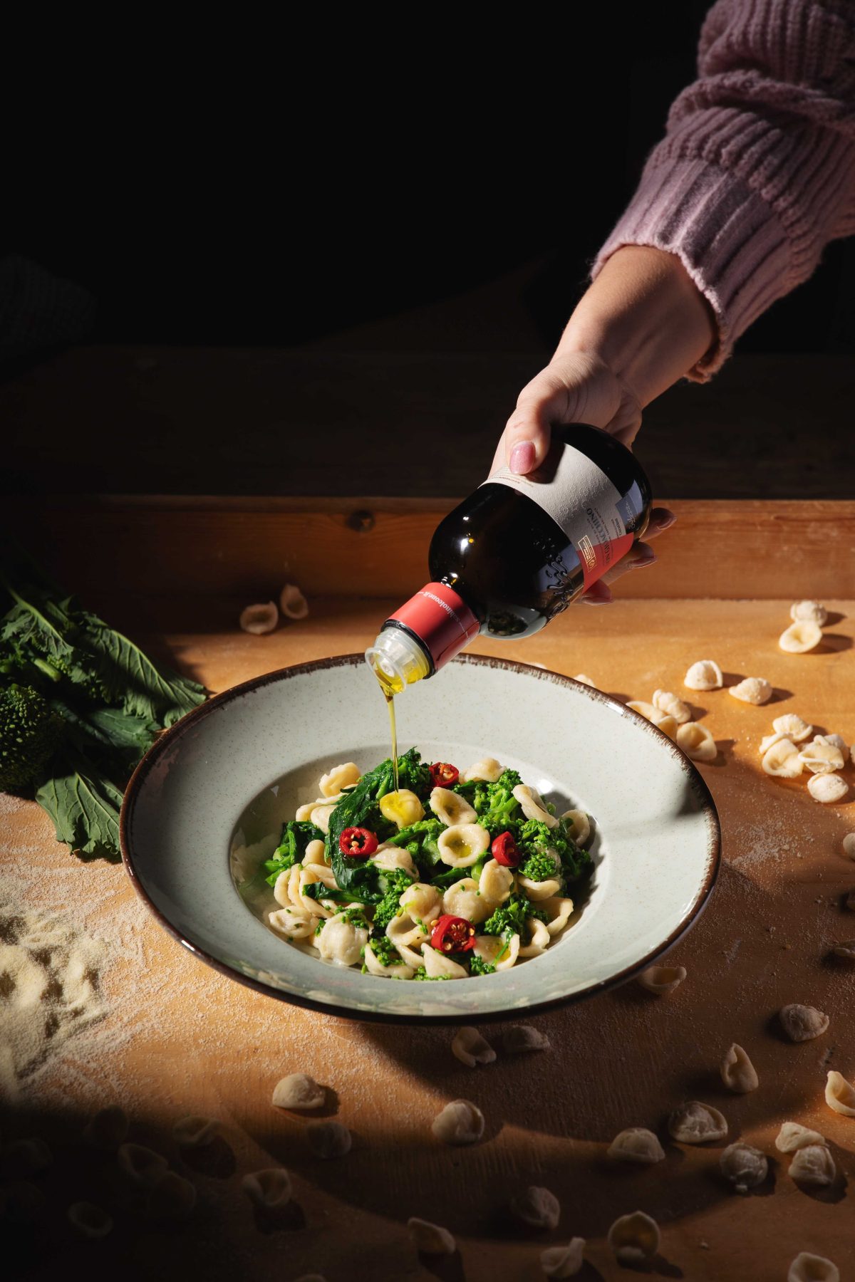 La gamma si articola in extravergini monocultivar da cultivar autoctone pugliesi: Coratina DOP, Peranzana, Frantoio, Ogliarola Garganica e Carolea. Ogni referenza esprime il carattere specifico della varietà attraverso tecniche di estrazione tra le più moderne del settore. Una filiera corta e tracciabile garantisce qualità costante e profili organolettici precisi, adatti alle esigenze di cucine professionali di livello.